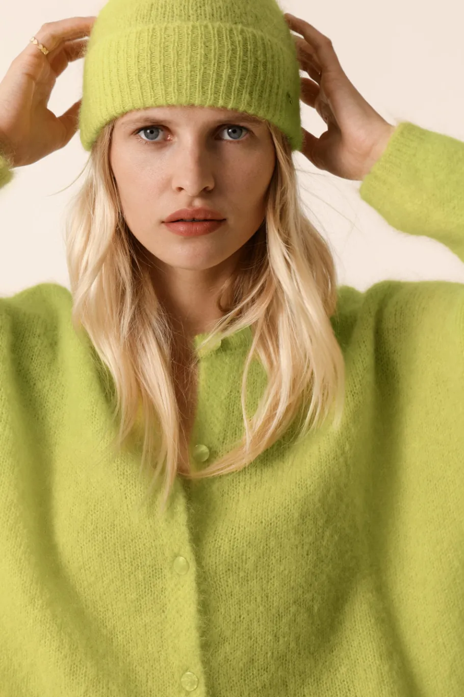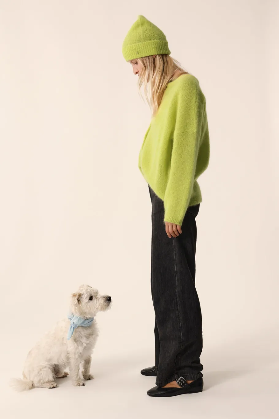 Volume large et droit, matière noble et déclinaison de coloris dans l’air du temps, le gilet Bea séduit par son élégante décontraction. • Gilet droit boutonné volume large • Encolure ronde • Emmanchures décalées • Finitions en bord-côte • Gilet femme réalisé en fil italien du groupe « Moelleux » en Kid Mohair et laine mérinos certifiée sans Mulesing. Fil gonflant, chaud, très doux et duveteux. • Coloris Luciole : un jaune fluo verdit • Modèle dessiné à Paris par notre styliste • Longueur : 59 cm pour une taille 1 •Jolien mesure 1m76 et porte une taille 1 • Conseil style : portez-le avec le pantalon en velours Loumo et les mocassins Phany