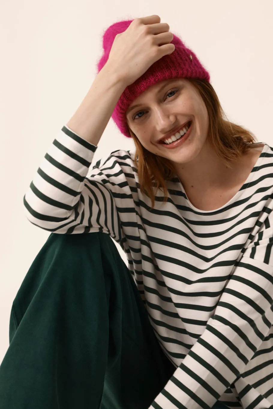 Incontournable Des Petits Hauts, notre iconique marinière Filly confirme séduit saison après saison. Déclinée dans des coloris coordonnés à la collection et moddernisée par une coupe oversize, elle est accessoirisée d’une jolie broche.• Marinière oversize manches longues• Encolure ronde dégagée• Emmanchures décalées• Base fendue• Broche incluse différente en fonction des coloris• Coton Oeko-Tex epais et respirant • Coloris Écru et Épicéa : un blanc écru et un vert foncé• Modèle dessiné à Paris par notre styliste• Longueur : 60 cm pour une taille 1• Josie mesure 1m77 et porte une taille 1• Conseil style : portez-la avec le jean mum louisette 1 et la veste en jean Loubia pour un look décontracté