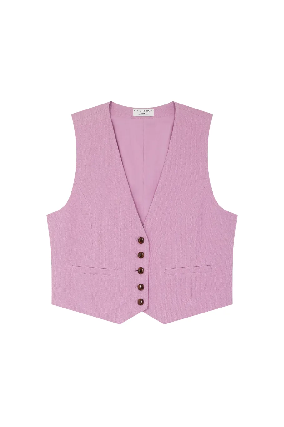 En total look avec un pantalon habillé ou avec un t-shirt et un jean pour une silhouette moins formelle, la veste de tailleur sans manches Ellion sera dans tous les vestiaires cette saison. Esprit gilet d’homme féminisé par une découpe princesse, c’est la pièce à porter dès l’automne. • Gilet costume sans manches à découpe princesse • Encolure V • Fausses poches passepoilées • Ouverture boutonnée • Gilet sans manches en coton et lin • Coloris Blossom : un rose mauve • Modèle dessiné à Paris par notre styliste • Longueur : 106 cm pour une taille 1 • Iolanta mesure 1m71 et porte une taille 1 • Conseil style : portez-le gilet sans manches Ellion et des bottines pour une silhouette chic et féminine