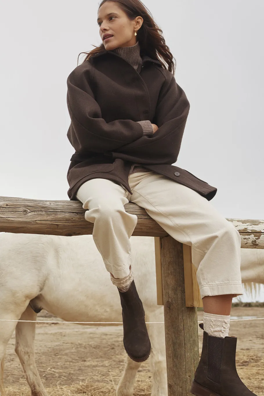 Revues et stylisées, les emblématiques Chelsea boots Lysette se portent avec une semelle chunky pour un look plus contemporain. Modèle automnal par excellence, ces chaussures tout terrain à porter avec un pantalon ou une jupe s’adapteront à tous les looks. • Bottines chunky en croûte de velours • Semelle crantée • Élastique Chelsea tricoté de Lurex • Coloris Ours : un marron foncé • Modèle dessiné à Paris par notre styliste • Fabriqué au Portugal • Hauteur bottine : 17,5 cm – Hauteur talon : 4,5 cm • Tailles disponibles : 36-41 • Livré avec un pochon de voyage • Nous vous recommandons de vous rendre chez un cordonnier pour faire poser un patin intégral à l’avant après les avoir portées quelques jours. • Conseil style : portez-les avec une jupe longue ou un jean • Conseil taille : cet article taille normalement, choisissez votre taille habituelle