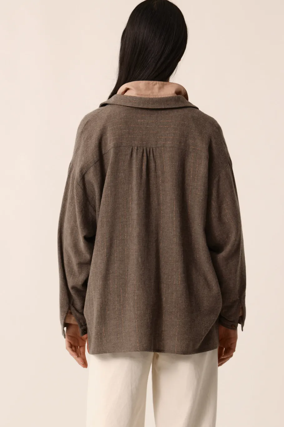 Tombé impeccable, coupe chic décontractée, la chemise Vanille a tout pour elle. Modernisée par un volume ample et une fine rayure en lurex, vous allez adorer porter cette chemise oversize en viscose et laine durant l’automne-hiver. • Chemise ample en viscose et laine • Col et poignets chemise • Épaules tombantes • Poche plaquée sur poitrine • Ouverture boutonnée • Imprimé exclusif Des Petits Hauts rayure « Taman » : de fines rayures dorées sur un fond vert kaki • Modèle dessiné à Paris par notre styliste • Longueur : 69 cm pour une taille 1 • Emilie mesure 1m77 et porte une taille 1 • Conseil style : portez-la avec un pantalon évasé et les bottines Papilla pour une silhouette rétro