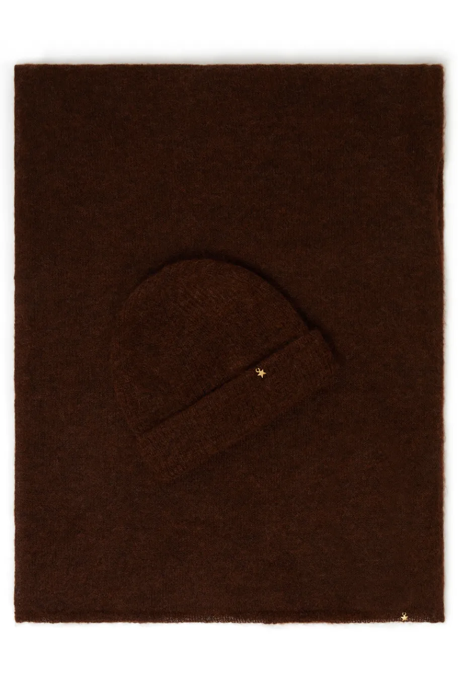 Iconique Des Petits Hauts avec son format XXL et ses coloris travaillés, vous allez adorer vous emmitoufler dans cette maxi écharpe Canela que vous pourrez aussi porter sur les épaules façon étole pour avoir bien chaud tout l’hiver. • Écharpe longue • Maille tricotée • Finitions en bord-côte fin • Pull réalisé en fil italien premium du groupe « Light » en Super Kid Mohair d’Afrique du Sud certifié RMS et Baby Alpaga du Pérou, donnant un aspect gonflant et garantissant légèreté et douceur. Fil emblématique Des Petits Hauts. • Coloris Ours : un marron foncé • Modèle dessiné à Paris par notre styliste • Longueur : 230 cm – Largeur : 85 cm • Conseil style : portez-la avec un bonnet uni ou rayé sur un manteau oversize