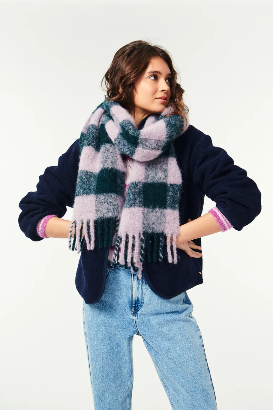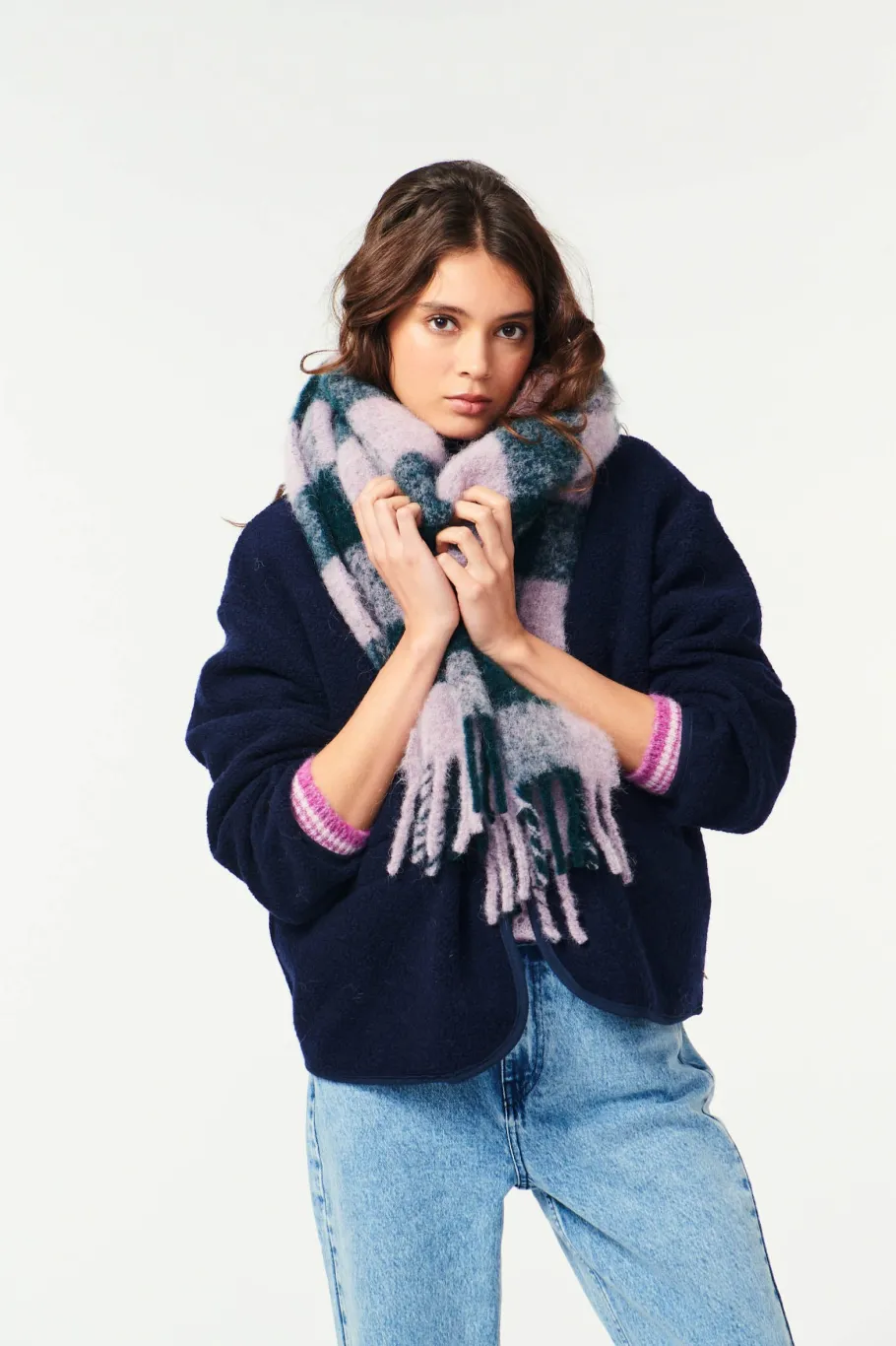 Jouez avec les volumes en adoptant le style XXL de l’écharpe Paully. En mohair et alpaga, carreaux surdimensionnés et franges finalisent ce modèle doux et enveloppant.• Écharpe longue à carreaux• Finitions frangées• Écharpe enveloppante et très douce en mohair et alpaga• Coloris Épicéa et Souffle : un vert foncé et un gris bleuté avec des touches de mauve• Modèle dessiné à Paris par notre styliste• Fabriqué en Italie• Longueur : 230 cm – Largeur : 33 cm• Conseil style : portez-la avec un pull en mohair et une veste en bouclette