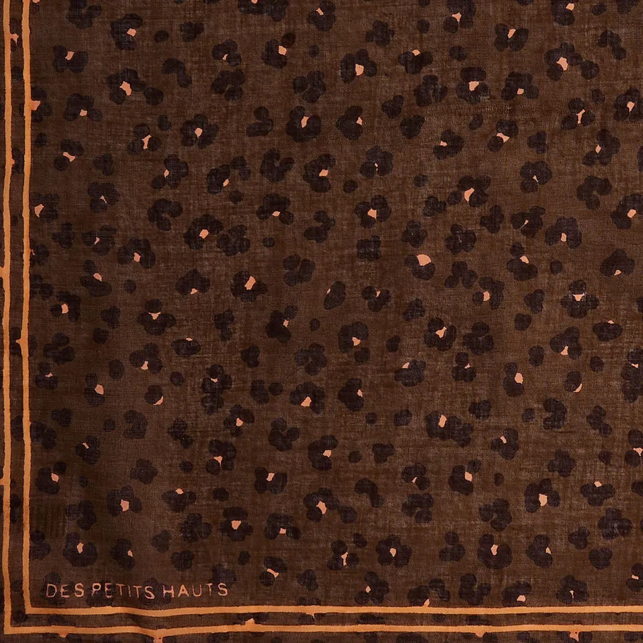 Alternative chic et légère à l’écharpe, le foulard en coton Nuchat s’imprègne de l’univers jungle chic pour l’automne avec son imprimé léopard. • Foulard en coton • Foulard imprimé selon une technique d’impression artisanale au cadre donnant un aspect unique • Imprimé exclusif Des Petits Hauts « Léo kaki » offrant une interprétation contemporaine du motif emblématique léopard dans des nuances de brun et de beige • Modèle dessiné à Paris par notre styliste • Dimensions : 100 x 100 cm • Conseil style : portez-le dès l’entrée de saison avec vos petit hauts préférés