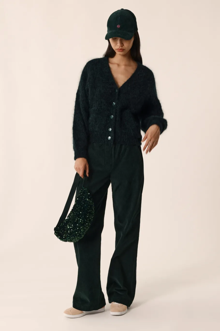 Avec son volume généreux et son encolure V profonde, le gilet Alouise sera de toutes les looks. Moelleux et cosy grâce à son kid mohair délicat, poches plaquées et boutonnage finalisent ce modèle parfait pour réchauffer vos tenues d’hiver.• Gilet boutonné volume large• Manches longues• Emmanchures décalées• Encolure V profonde• Poches plaquées• Finitions en bord-côte• Gilet en maille réalisé en fil italien du groupe « Moelleux » 62% Kid Mohair et 20% laine mérinos certifiée sans Mulesing. Fil exclusif et emblématique de la marque depuis 10 ans, il est gonflant, chaud, doux et duveteux.• Coloris Épicéa : un vert foncé• Modèle dessiné à Paris par notre styliste• Longueur : 56 cm pour une taille 1• Emilie mesure 1m77 et porte une taille 1• Conseil style : portez-le sur une robe longue imprimée ou avec un jean et des baskets pour une silhouette plus casual