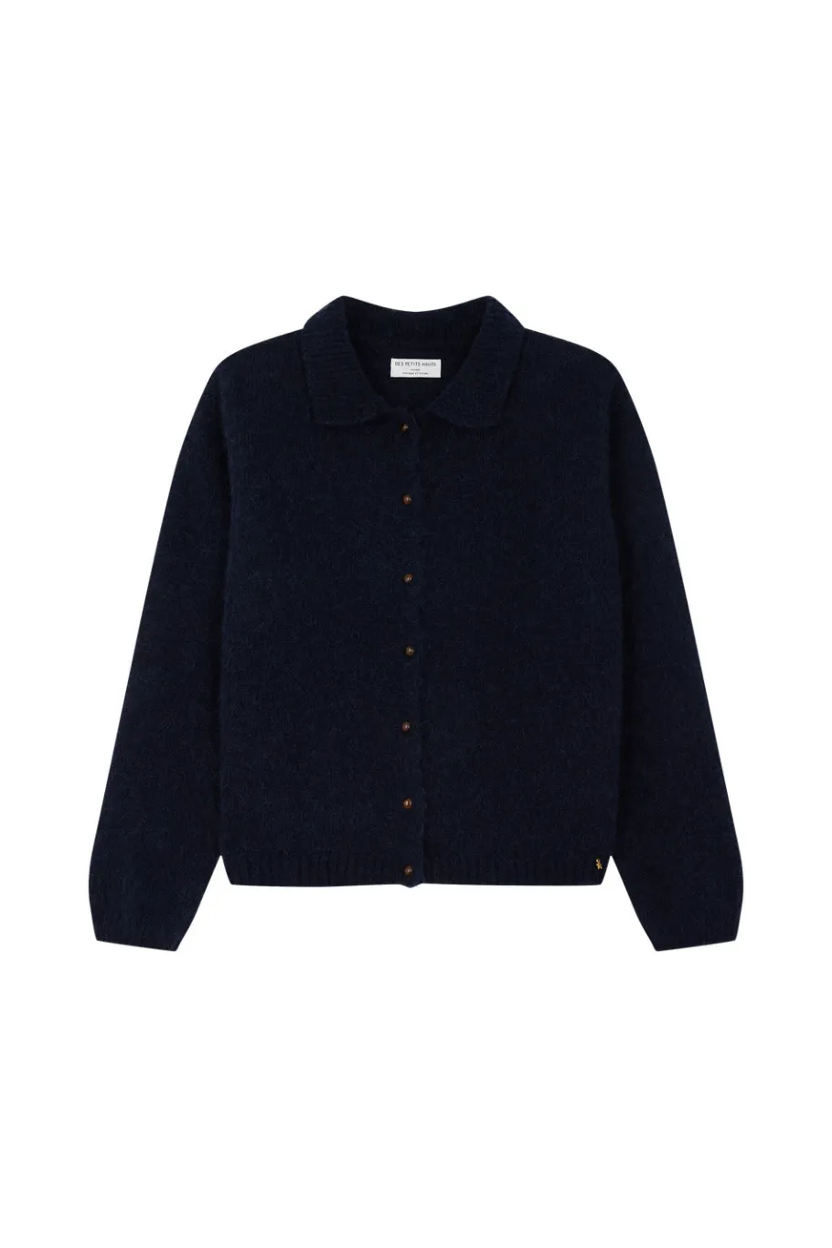 Porté avec vos jeans et jupes préférés, le pull droit Anouchka séduit pour son élégance et sa polyvalence. Flatteur et subtilement ajouré, la douceur de sa maille en alpaga superfine vous séduira immédiatement.• Gilet boutonné manches longues• Col chemise• Finitions en bord-côte• Gilet réalisé dans un fil italien composé d’Alpaga Superfine : Ce fil premium est épais, duveteux, confortable et très chaud au porter.• Coloris Marine : un bleu nuit intense• Modèle dessiné à Paris par notre styliste• Fabriqué en Italie• Longueur : 54 cm• Iolanta mesure 1m71 et porte une taille 1• Conseil style : portez-le