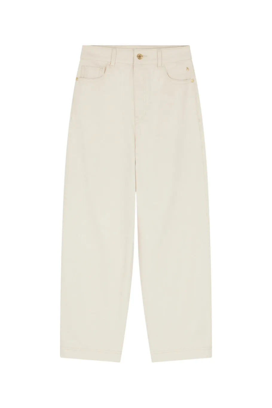 Coupe droite et jambes larges pour un look décontracté, remplacez votre classique jean bleu pour le coloris écru du Louadi. Taille haute et longueur cheville, il mettra en valeur votre silhouette. • Jean droit jambes larges • Taille haute • Longueur 7/8 • Ouverture zippée et boutonnée • Poches devant et dos • Coloris Écru : un blanc écru • Modèle dessiné à Paris par notre styliste • Longueur : 92 cm pour une taille 1 • Jolien mesure 1m76 et porte une taille 26 • Conseil style : portez-le avec un sweat et des mocassins • La ligne de denim est travaillée en collaboration avec une spécialiste du denim éco-conçu