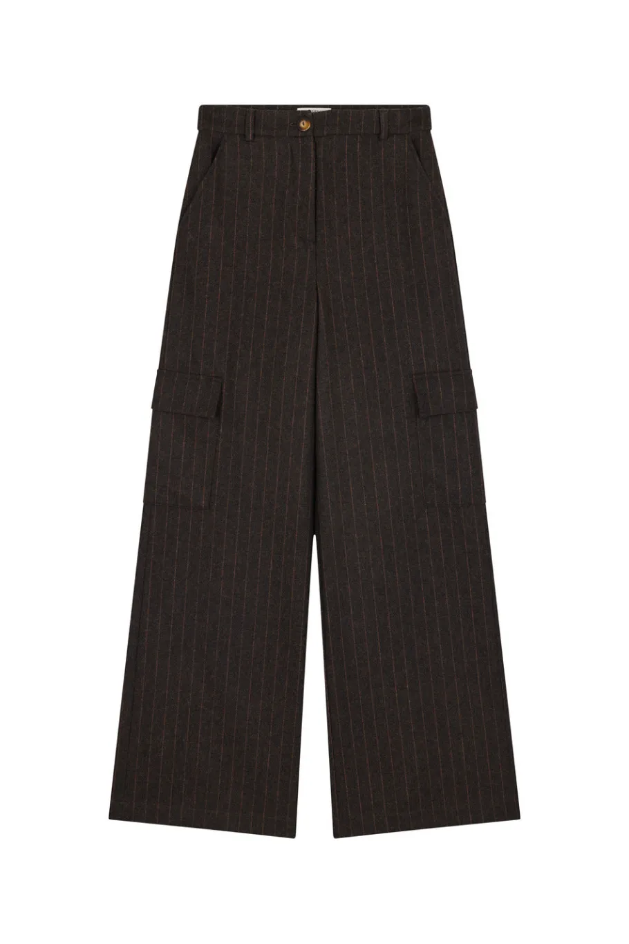 Alliant l’élégance d’un tissu italien au style urbain d’un pantalon cargo, le pantalon large Sable séduit pour son look hybride. Modèle inédit à porter avec des bottines pour une silhouette féminisée, on aime son volume exagéré et ses fines rayures. • Pantalon large cargo • Ouverture zippée et boutonnée • Dos élastiqué • Poches italiennes et poches cargo sur jambes • Doublure de la taille à mi-cuisse • Pantalon chaud en laine italienne • Rayure exclusive Des Petits Hauts « Asali » : de fines rayures brun chaud sur un fond gris anthracite • Modèle dessiné à Paris par notre styliste • Longueur : 110 cm pour une taille 1 • Josie mesure 1m77 et porte une taille 26 • Conseil style : optez pour un total look en le portant avec un t-shirt à message et le la surchemise Sabina