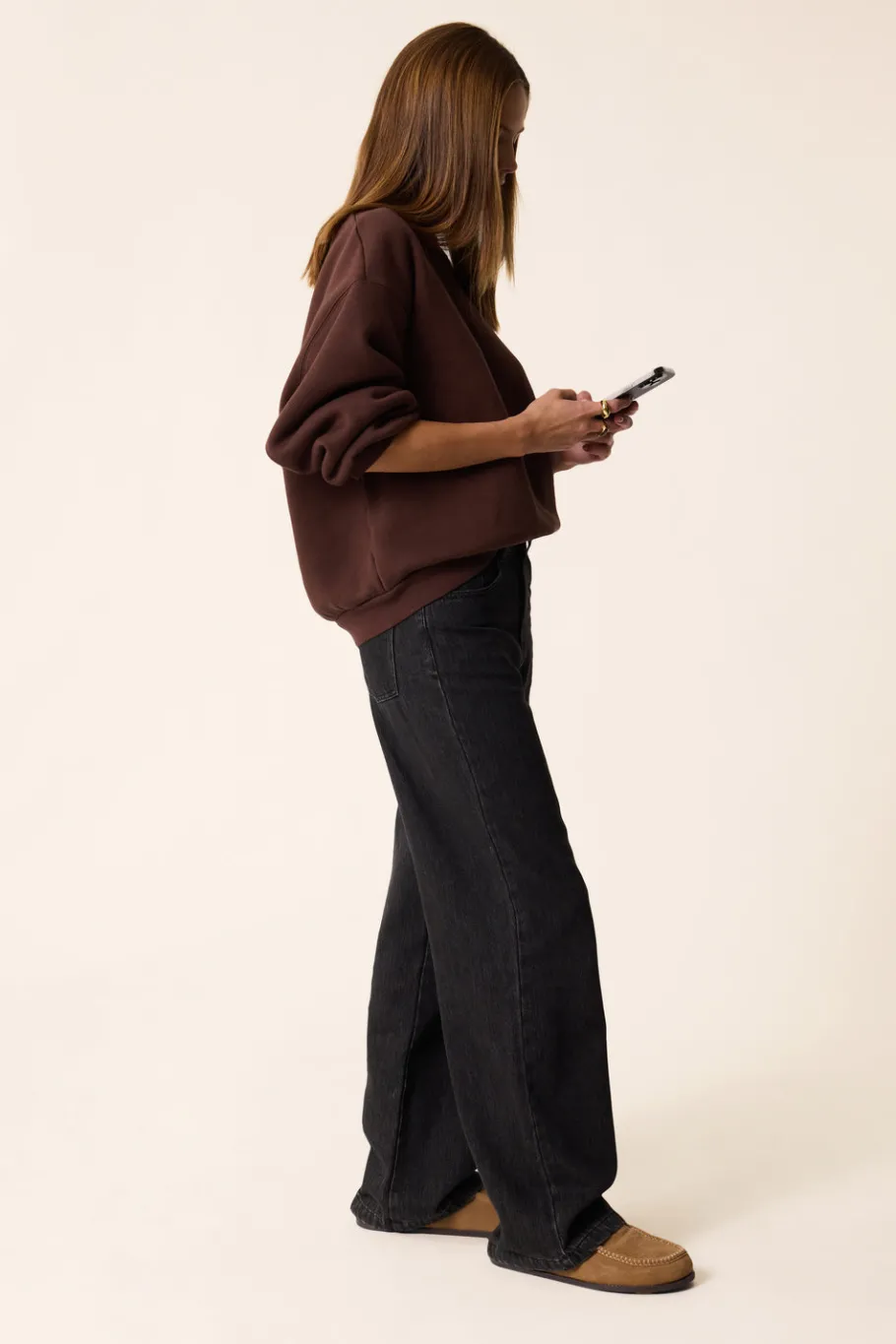 Minimaliste et cosy, le sweat Joeme se porte coupe oversize et accessoirisé d’une broche exclusive DPH. Basique du vestiaire facile à porter sur un pantalon, misez sur un look casual urbain en l’associant à une jupe longue en jean et des baskets. • Sweat oversize manches longues • Finitions en bord-côte • Molleton gratté intérieur doux et chaud • Broche incluse Ortense pour le coloris Crème et Oriette pour le coloris Ours • Coloris Ours : un marron foncé • Modèle dessiné à Paris par notre styliste • Fabriqué au Portugal • Longueur : 61 cm pour une taille 1 • Alessandra mesure 1m74 et porte une taille 1 • Conseil style : portez-le avec la jupe longue en jean Louria et des baskets