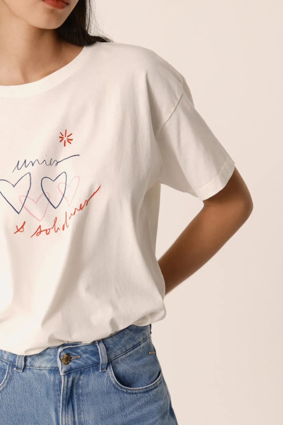 À l’occasion d’Octobre Rose, Des Petits Hauts se mobilise pour la recherche contre le cancer du sein et pour soutenir les femmes qui combattent la maladie. Le t-shirt manches courtes Marina est imprimé d’un message universel plein d’optimisme. La totalité des bénéfices des ventes de ce t-shirt sera reversée à l’institut Curie.• T-shirt oversize en jersey de coton fluide• Col rond• Manches courtes à revers• Coloris Écru : un blanc écru hivernal• Modèle dessiné à Paris par notre styliste• Fabriqué au Portugal• Longueur : 61,5 cm pour une taille 1 • Emilie mesure 1m77 et porte une taille 1• Conseil style : portez-le avec le jean Louisette et des mocassins• Conseil taille : Ce modèle a été imaginé pour un porté oversize. Nous vous recommandons de prendre votre taille habituelle pour avoir le même porté que notre mannequin, si vous souhaitez un look plus ajusté, prenez la taille inférieure.