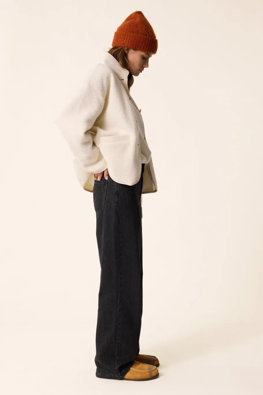 La veste en laine bouclette Zlavina s’inspire du vestiaire sportswear et se mue en une pièce cosy très contemporaine. Urban chic et facile à associer, cette veste col montant taillée comme un blouson gagne en élégance avec son biais et son boutonnage ton sur ton. • Veste manches longues en maille bouclette • Volume large • Emmanchures tombantes • Col montant • Ouverture boutonnée • Poches passepoilées • Finitions biais • Veste réalisée en fil italien du groupe « Bouclette » contenant de la laine et du mohair pour un rendu chaud, doux et moelleux. • Coloris Crème : un blanc crème • Modèle dessiné à Paris par notre styliste • Longueur : 61 cm pour une taille 1 • Alessandra mesure 1m74 et porte une taille 1 • Conseil style : portez-la sur le pull Anelie avec un jean délavé et des baskets pour un look urbain